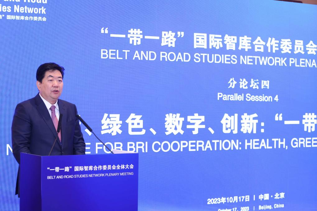 北京市西城区委书记孙硕17日在“一带一路”国际智库合作委员会全体大会——健康、绿色、数字、创新:“一带一路”新空间论坛上致辞。