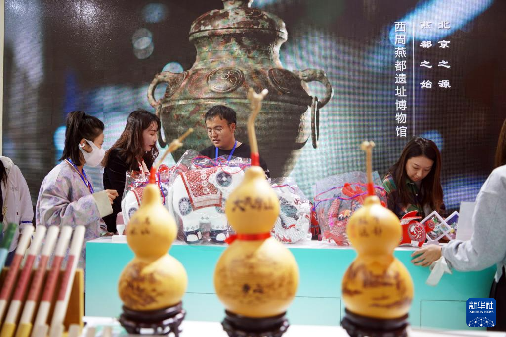 10月20日,参观者在西周燕都遗址博物馆展区了解北京起源相关内容。