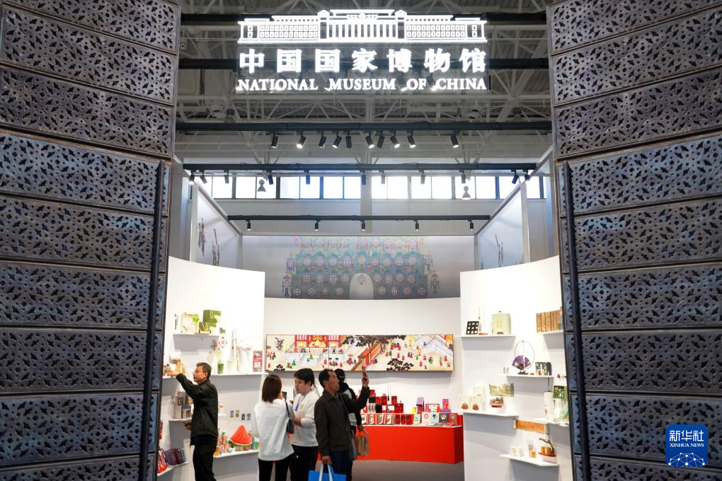 10月20日,参观者在中国国家博物馆展区参观。