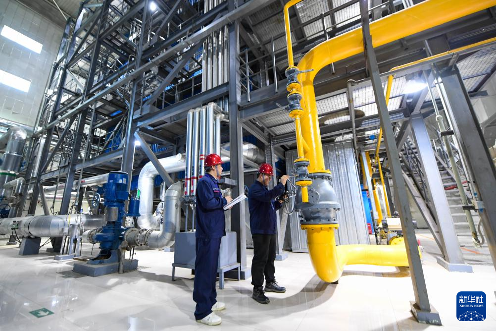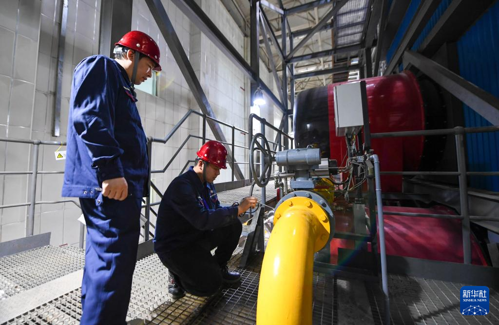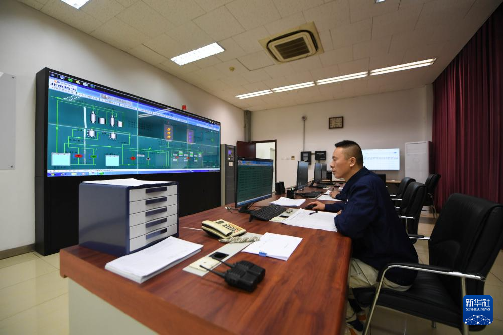 11月6日,北京市热力集团有限责任公司海淀分公司的技术人员在控制燃气供热设备运行。