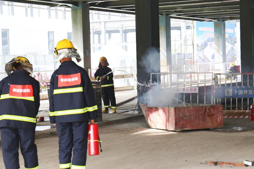 模拟施工现场消防事故应急救援演练。(受访者供图)