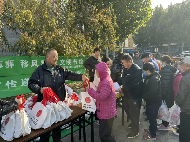 11月8日上午,瀛海镇开展以“移风易俗,绿色祭扫”为主题的宣传活动。