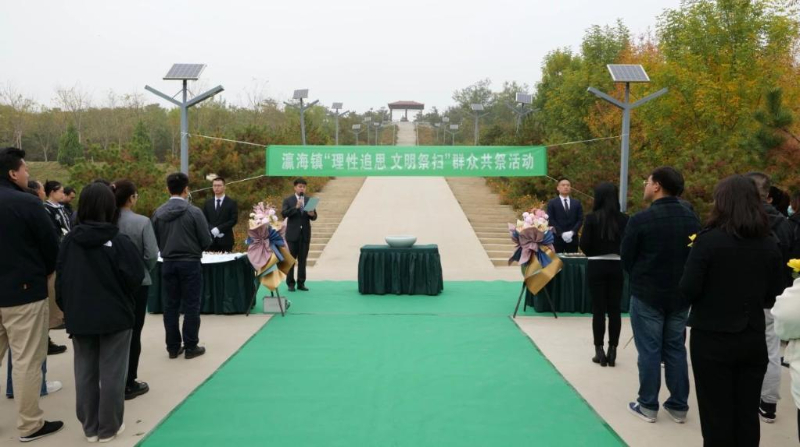 10月31日,瀛海镇在海安堂墓园举办了一场庄重的群众祭扫活动,旨在以绿色、文明方式缅怀逝去的亲人,表达对先辈们的追忆和怀念。活动采用水溶祭祀的方式向逝去先人表达哀思。水溶祭祀是一场无烟的仪式,也是一份情感的寄托。