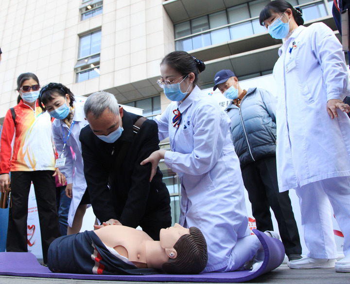 部分医院开展义诊活动,指导市民进行心肺复苏演练。新华社发