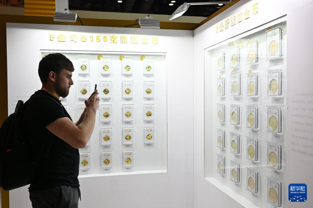 12月1日,一名国外参观者在博览会上拍摄熊猫金币。