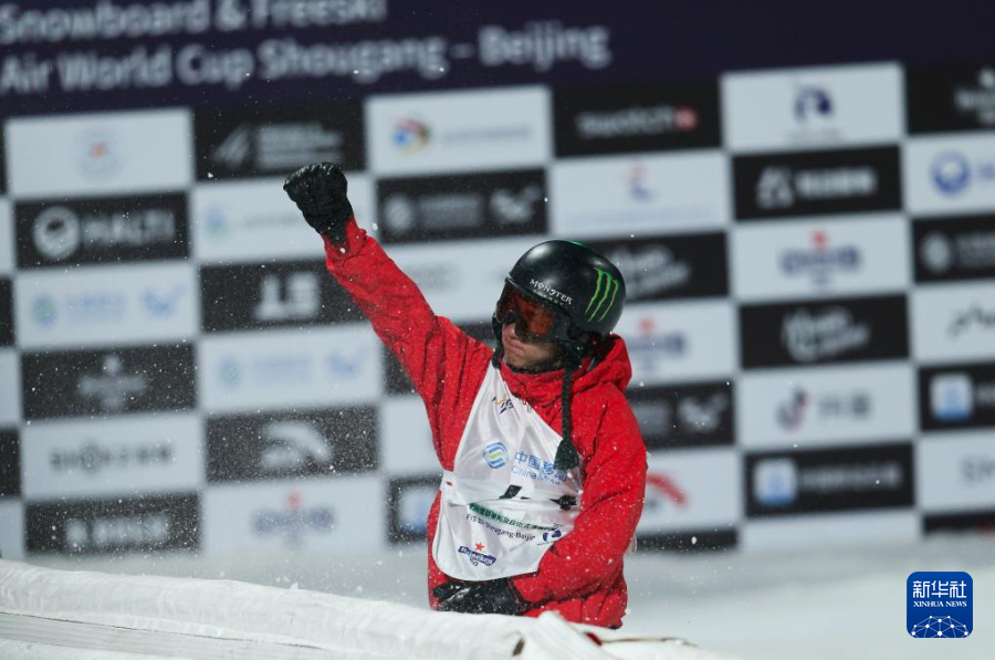 12月2日,中国选手苏翊鸣在决赛第二轮后庆祝。