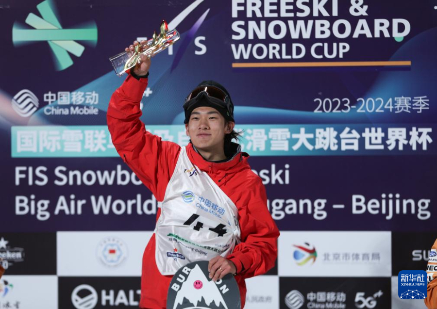 当日,在北京首钢滑雪大跳台举行的2023-2024赛季国际雪联单板及自由式滑雪大跳台世界杯单板滑雪大跳台男子组决赛中,中国选手苏翊鸣以184.50分夺得冠军,日本选手木俣椋真以180.75分获得亚军,日本选手木村葵来以175.75分获得季军。