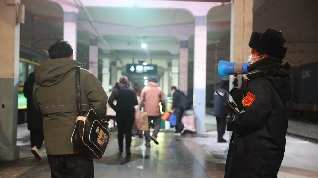 山西大同站铁路工作人员在疏导进出站旅客。(中国铁路太原局集团有限公司供图)