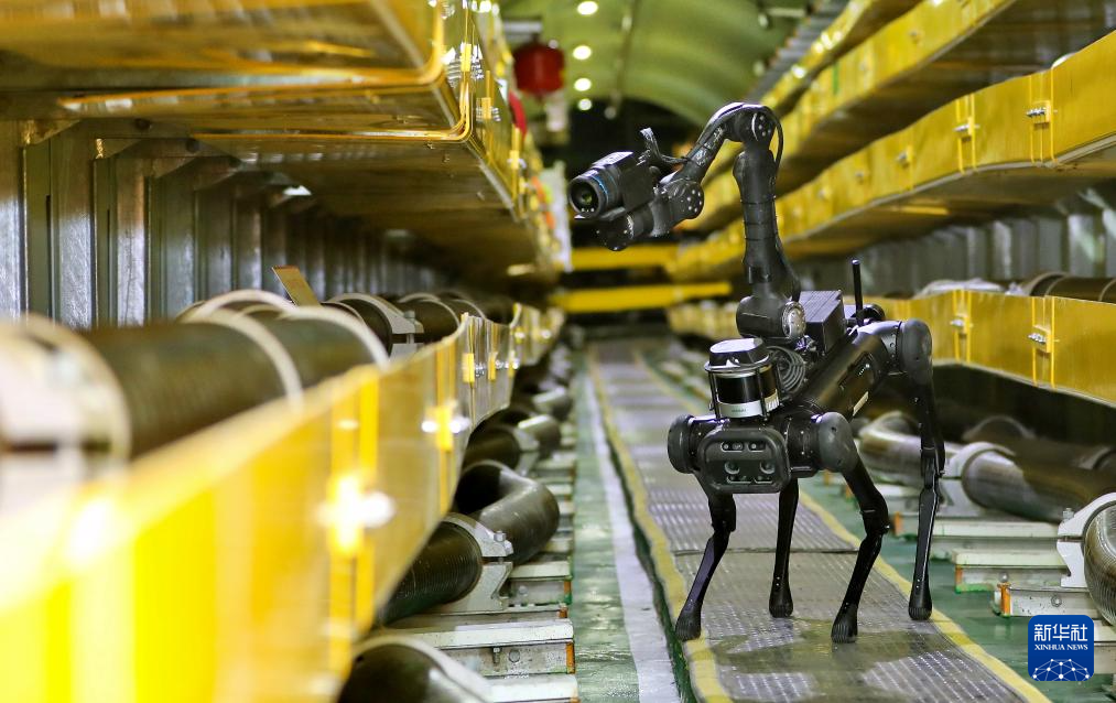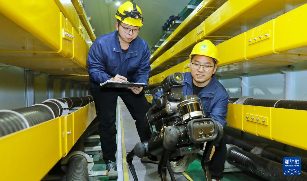 12月23日,“机器狗”四足巡检机器人在北京市丰台区玉泉营电缆隧道内开展寒潮天气地下输电线路巡检。