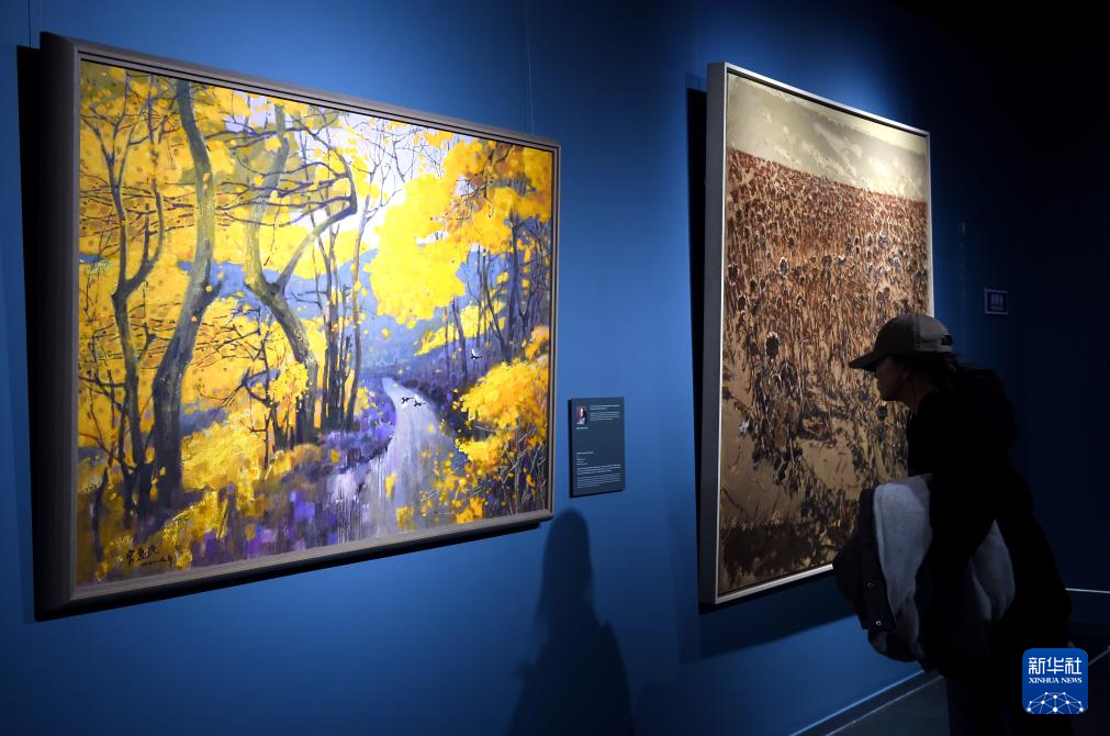 12月22日,观众在国家大剧院北水下廊道西侧展厅观看《宽阔的现实主义:中国与西班牙当代油画展》。