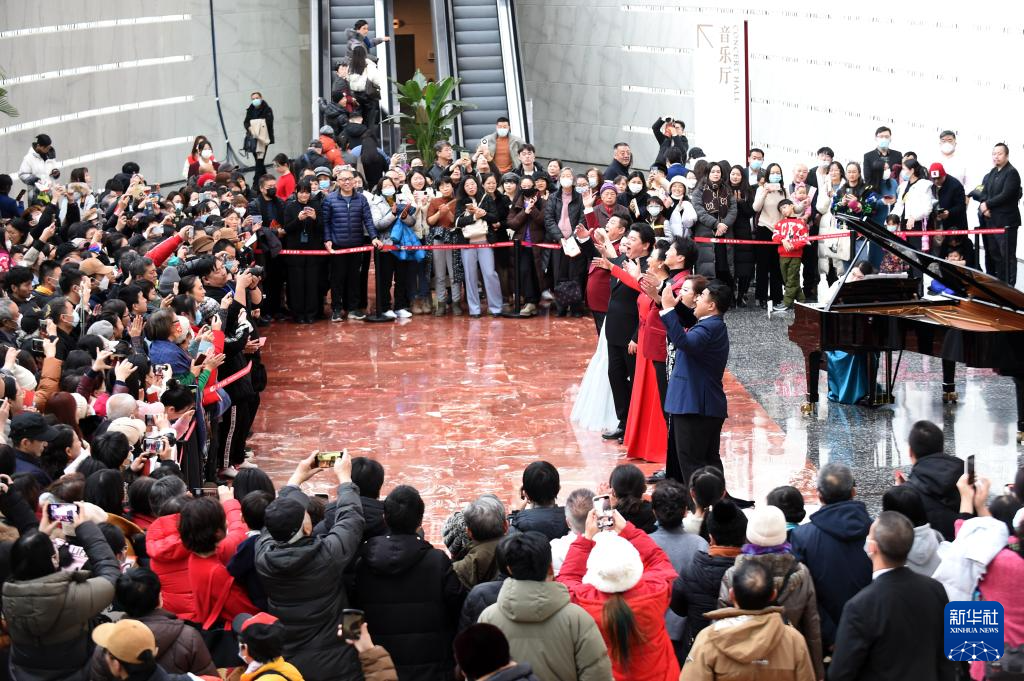 12月22日,观众在国家大剧院橄榄厅欣赏国家大剧院歌剧演员队带来的歌剧经典唱段。