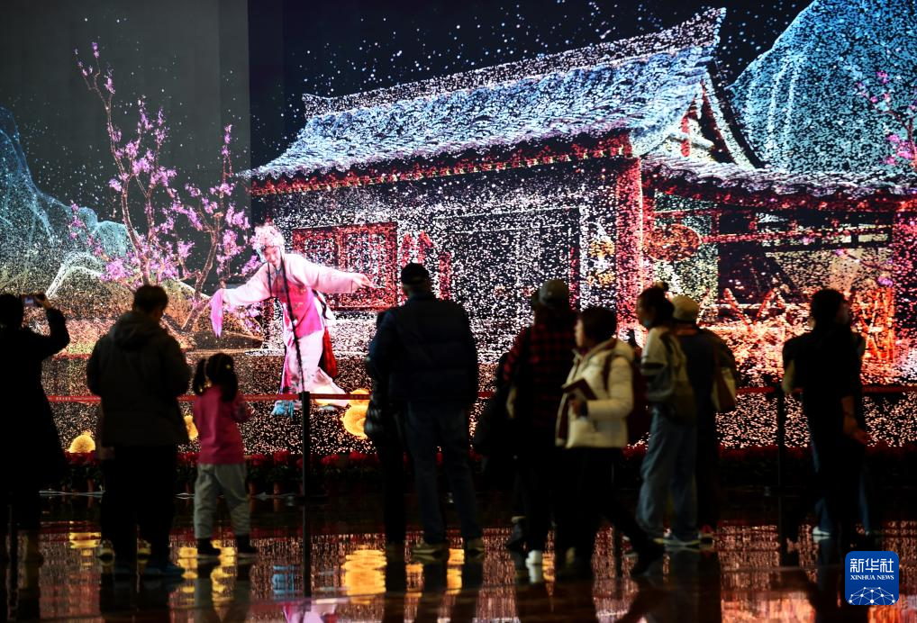 12月22日,观众在国家大剧院戏剧场入口观看裸眼3D大屏。