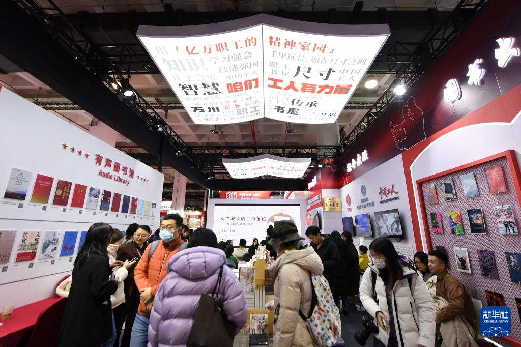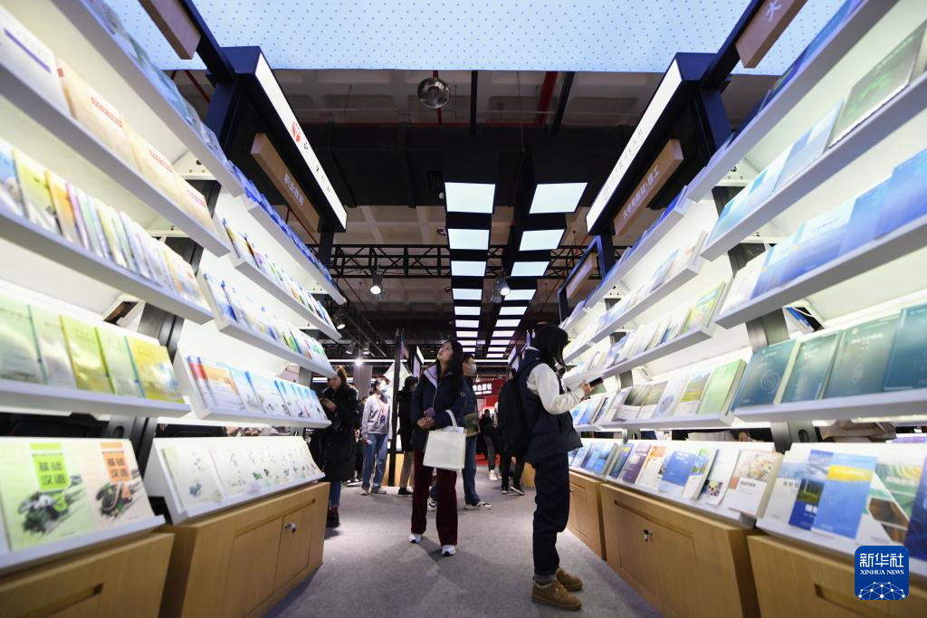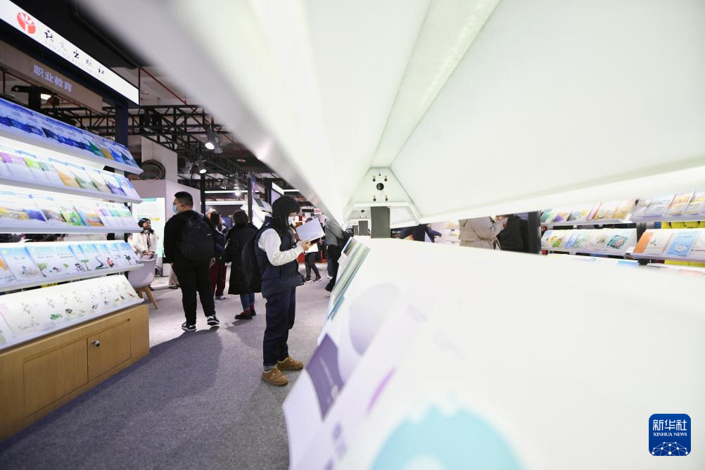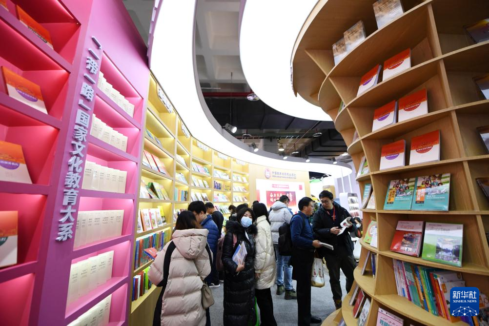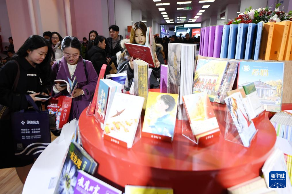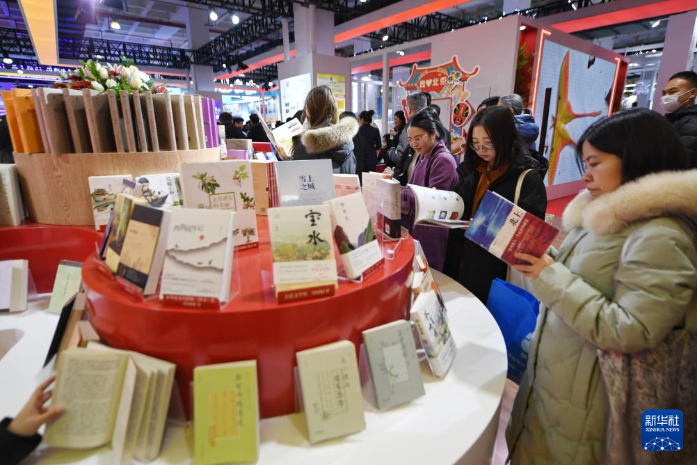 1月11日,参观者在2024北京图书订货会上阅览书籍。