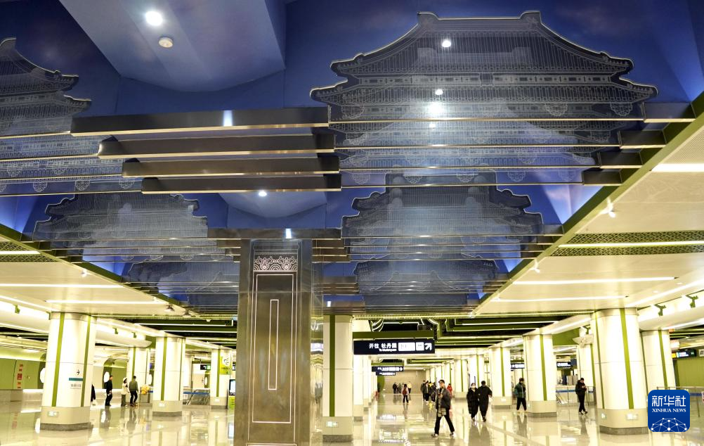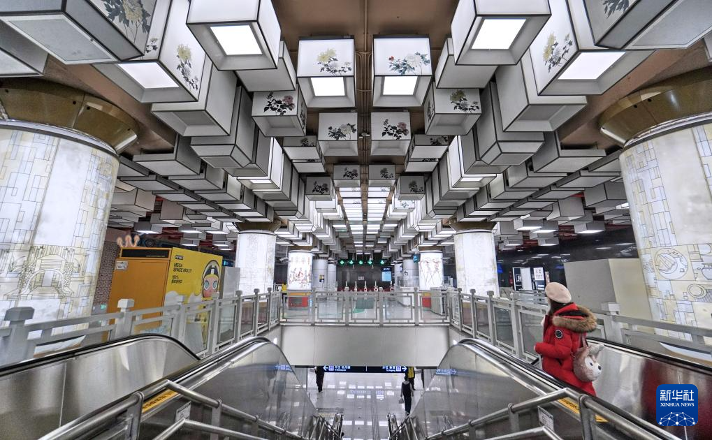 这是平安里地铁站内的中国风灯饰(1月20日摄)。