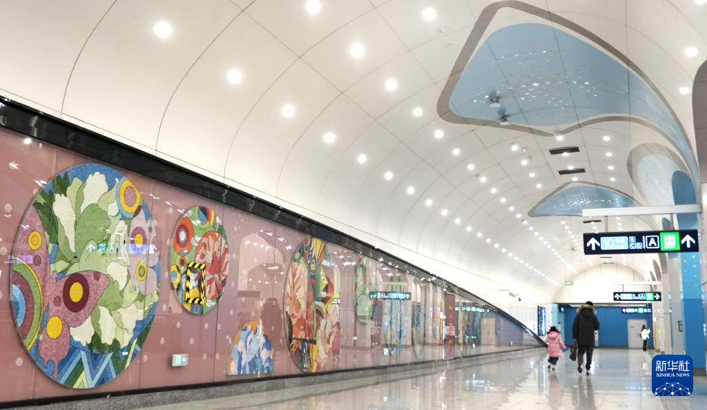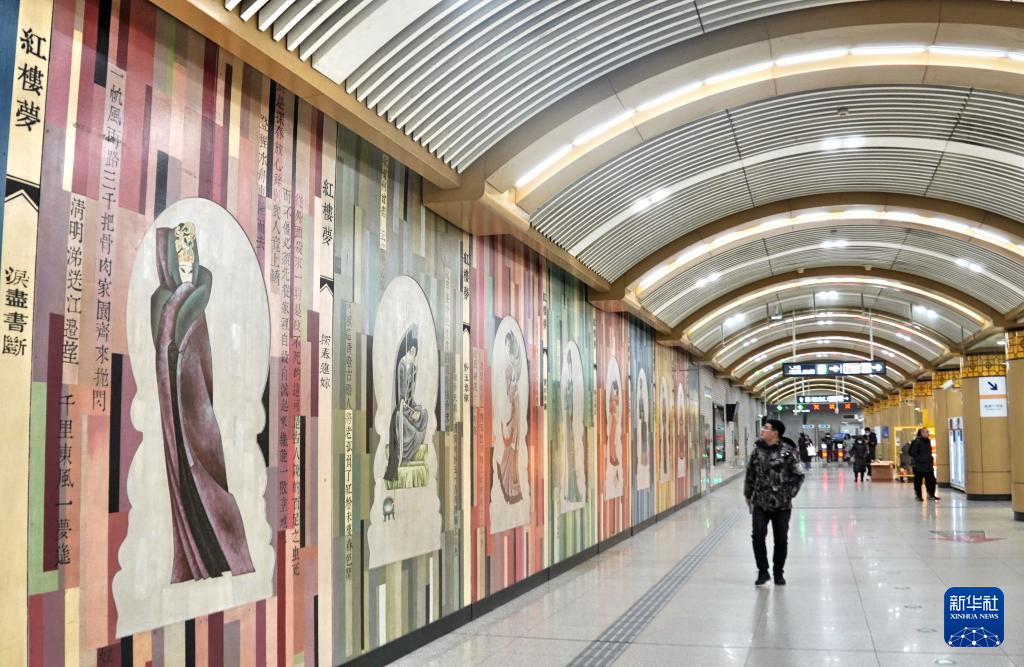 乘客走过牡丹园地铁站内的壁画(1月20日摄)。