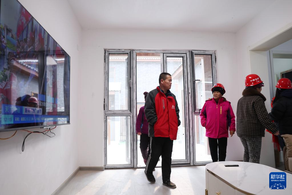 1月30日,在北京市门头沟区沿河口村,村民在参观样板间。