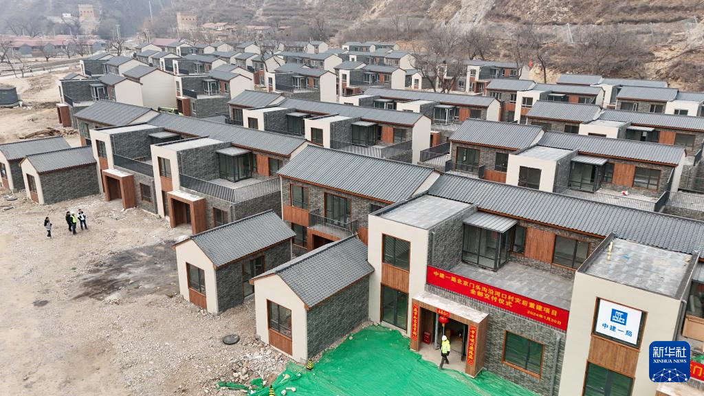 这是1月30日在北京市门头沟区沿河口村拍摄的灾后重建安置房(无人机照片)。