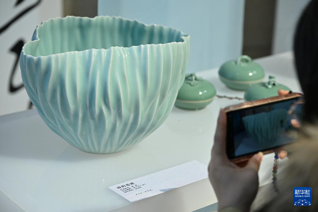 当日,“不灭窑火——当代龙泉青瓷精品展”在中国工艺美术馆(中国非物质文化遗产馆)开展。本次展览共展出145名工艺美术家、非遗传承人的近200件作品,集中展示浙江龙泉青瓷文化。