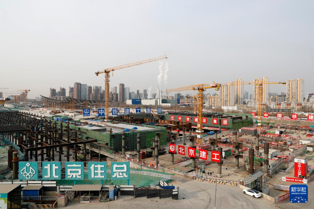 这是2月2日拍摄的北京城市副中心站综合交通枢纽工程建设现场。