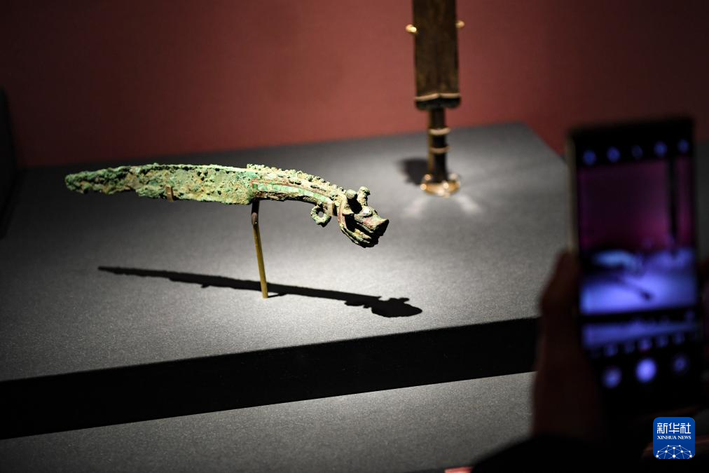 这是在故宫博物院“历史之遇——中国与西亚古代文明交流展” 展出的龙首短刀(1月28日摄)。