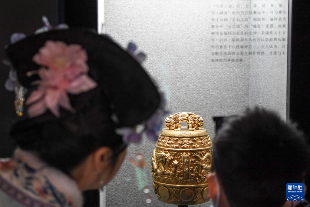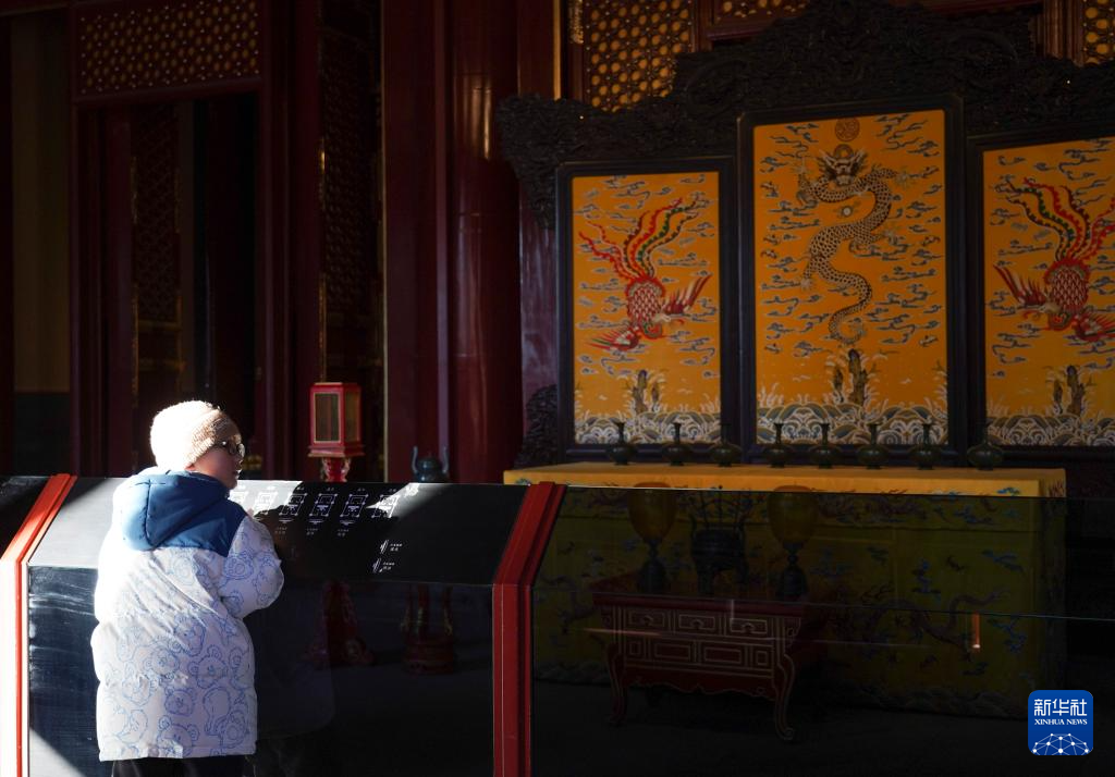 游客在故宫钟粹宫观看编钟(1月28日)。