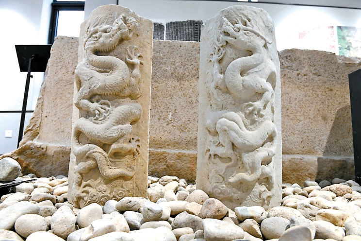 金代浮雕龙纹汉白玉角柱