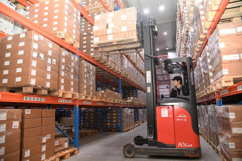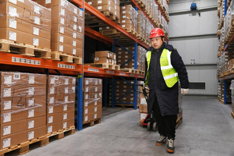 工作人员在位于北京天竺综合保税区的上药科园贸易冷藏库工作(2月1日摄)。新华社记者 任超 摄