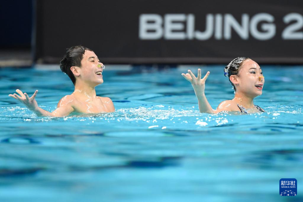 当日,在2024年花样游泳世界杯(北京站)混合双人技术自选比赛中,中国组合季荷悦/郭牧也以206.8800分的成绩夺得冠军。