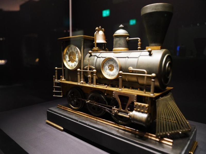 这是3月14日在香港故宫文化博物馆拍摄的1900年的火车头式钟表。新华社记者 王申 摄