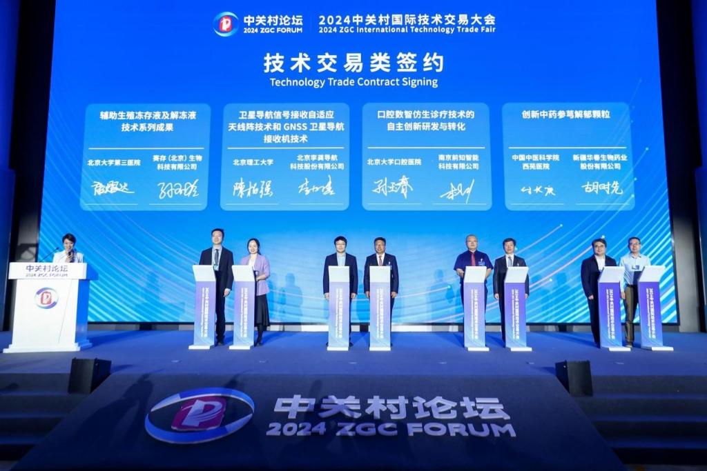 2024中关村国际技术交易大会现场,促进产学研融合的四个高校院所转化项目现场签约。受访者供图