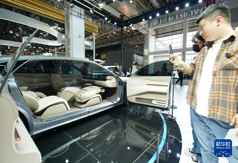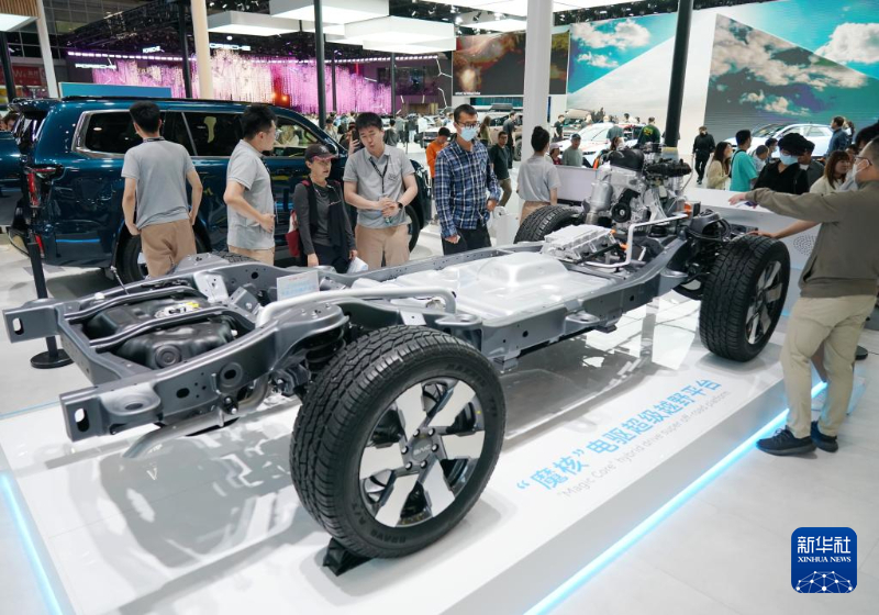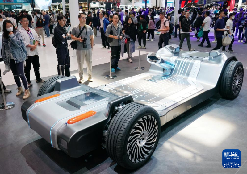 4月30日,在北京车展上,观众在吉利汽车展区参观一款AI数字底盘。