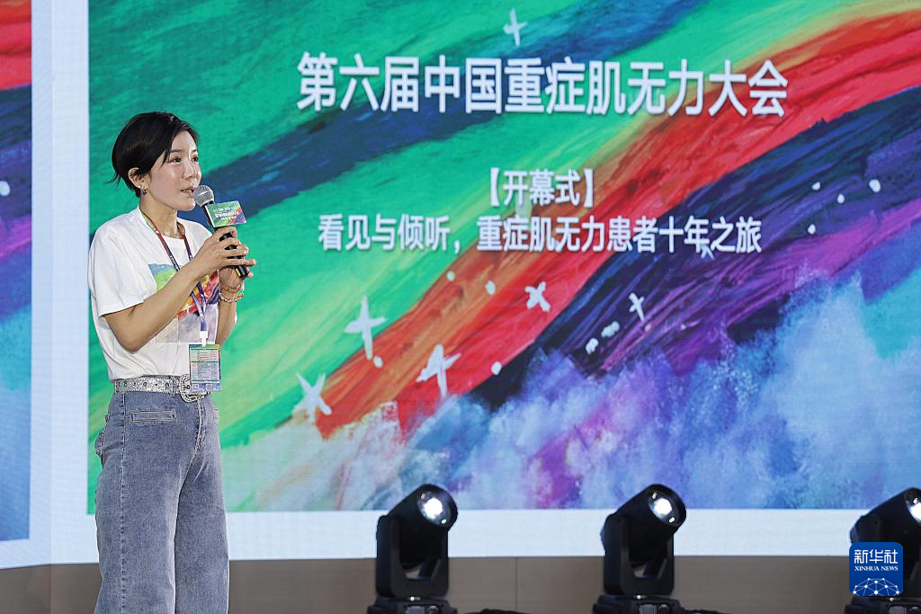 6月14日,重症肌无力患者韩薇薇在大会上分享生命故事。