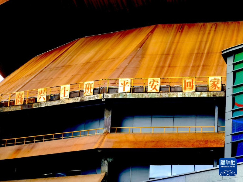 2024年9月11日,四高炉悬挂的老标语。新华社记者 夏子麟 摄
