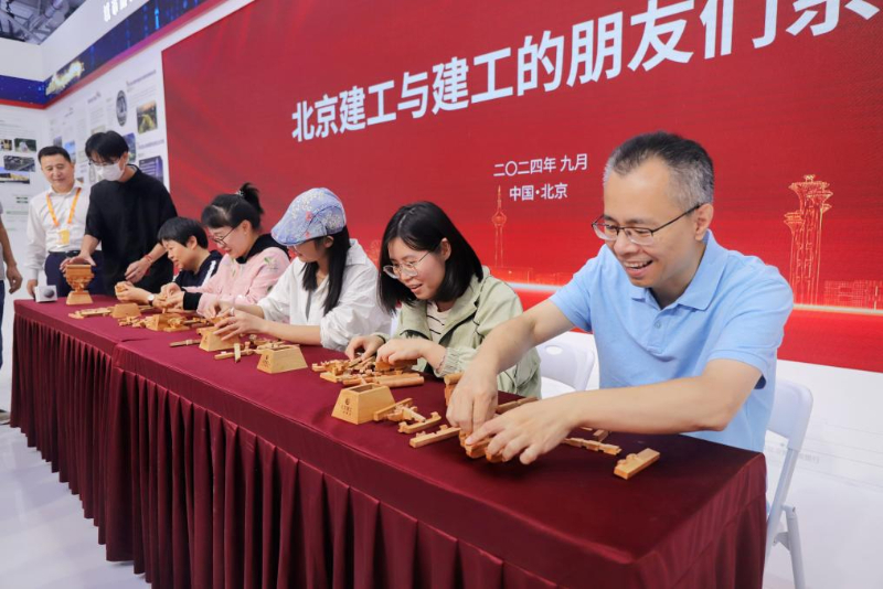 图为现场举办的拼装微缩斗拱活动(刘雨菲摄)