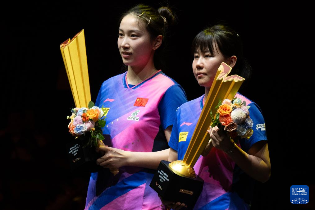 当日,在北京举行的2024年世界乒乓球职业大联盟(WTT)中国大满贯女子双打决赛中,中国组合陈幸同/钱天一3比1战胜队友孙颖莎/王艺迪,夺得冠军。