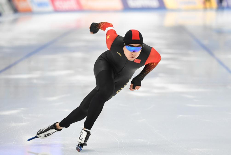 12月1日,中国选手高亭宇在比赛中,他以35秒59的成绩获得第19名。新华社记者 鞠焕宗 摄