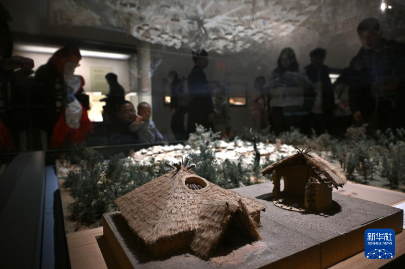 12月3日,观众在中国国家博物馆“古代中国”基本陈列参观展出的仰韶文化姜寨聚落遗址模型。