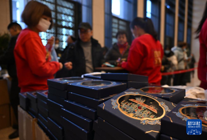 12月3日,观众在中国国家博物馆排队购买凤冠冰箱贴。