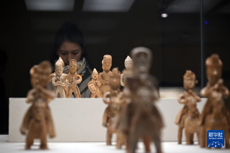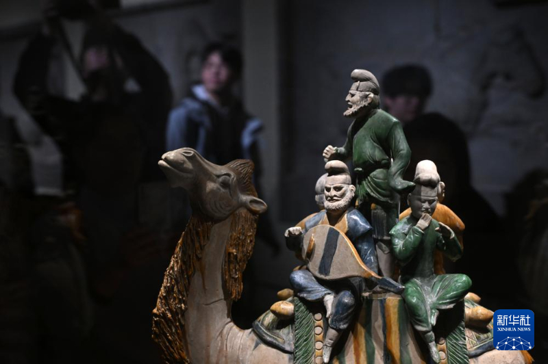 这是中国国家博物馆“古代中国”基本陈列展出的唐代三彩釉陶骆驼载乐俑(12月3日摄)。