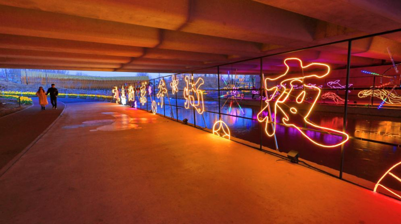 以上图片:2024年12月28日在北京市温榆河公园拍摄的“2025北京千灯夜”璀璨夜景。CICPHOTO/刘宪国 摄