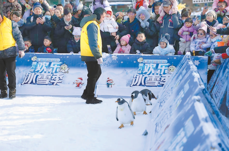 紫竹院公园欢乐冰雪季特别引入了企鹅观赏项目,为节日增添了更多乐趣。市公园管理中心供图