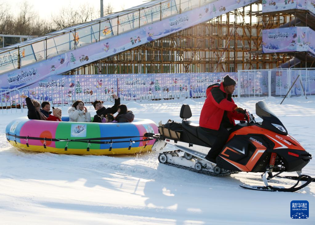 1月4日,游客在国家速滑馆“冰丝带冰雪狂欢季”活动中体验雪上游乐项目。