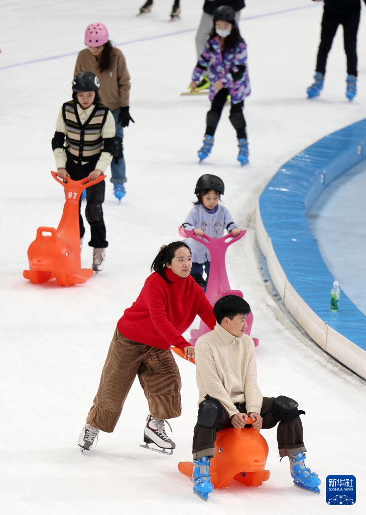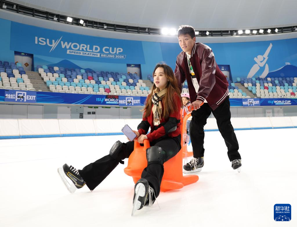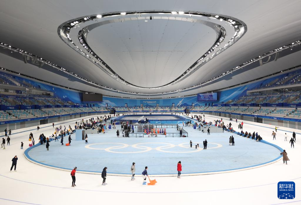 周末,许多游客来到北京国家速滑馆,享受冰雪带来的乐趣。