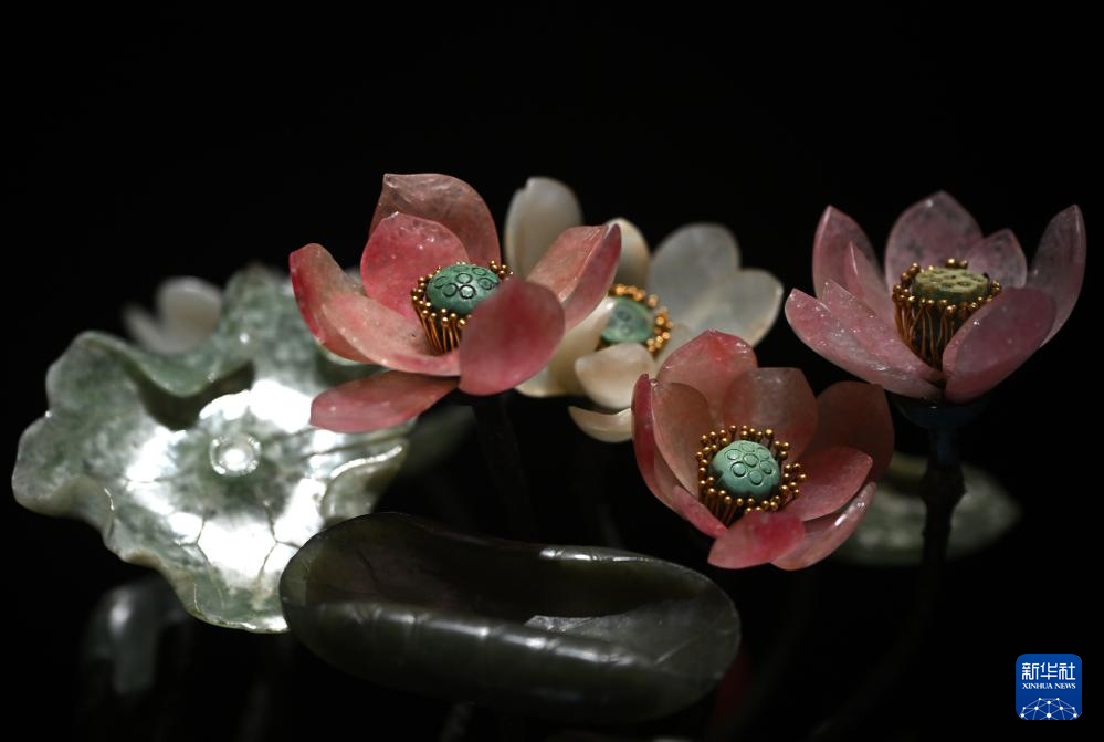 1月6日拍摄的青玉盆玉石荷花盆景。