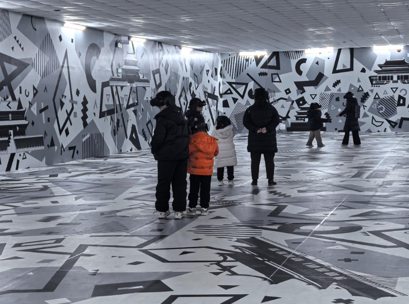 走进《看我天地中轴》互动体验展,观众只需佩戴一套VR设备,就能一秒化身虚拟世界中的游客,在约35分钟的时间里,跟随北京中轴线奠基者刘秉忠,一同体验南天揽胜、夜游故宫、鼓楼听韵、飞览中轴的神奇魅力。