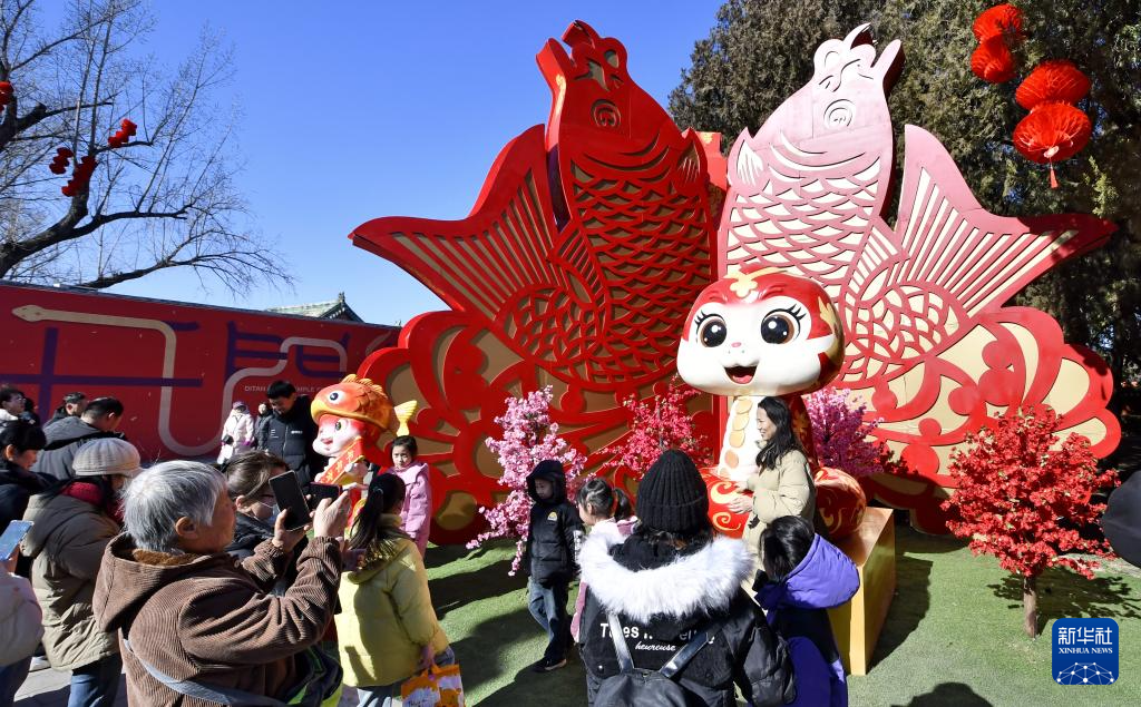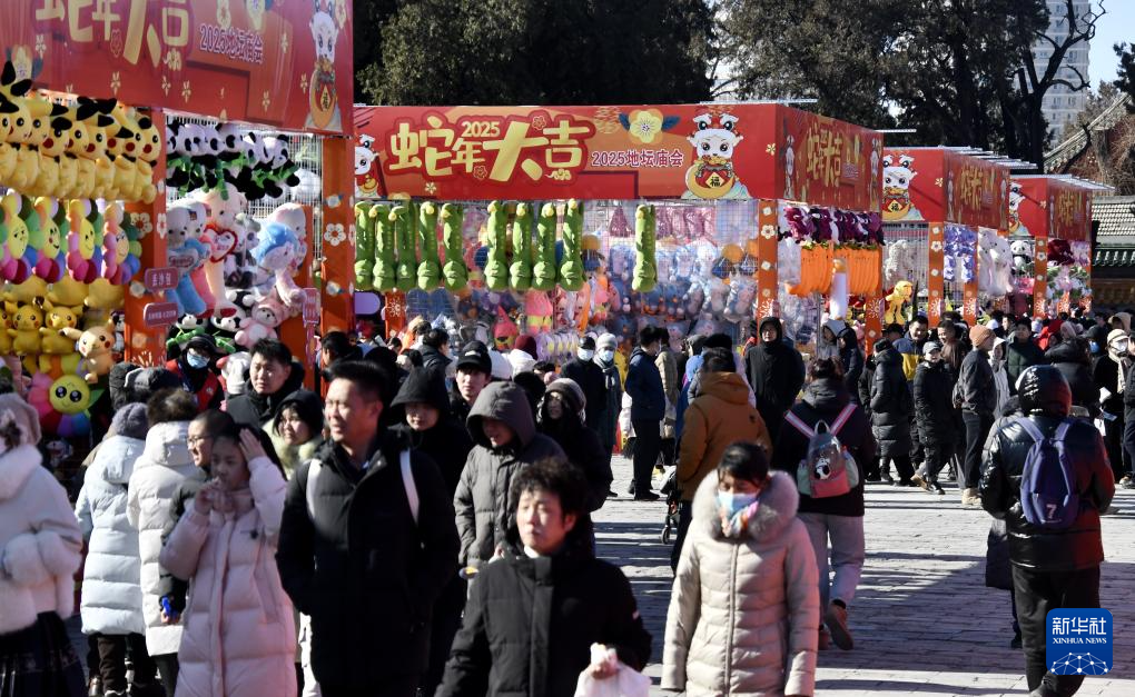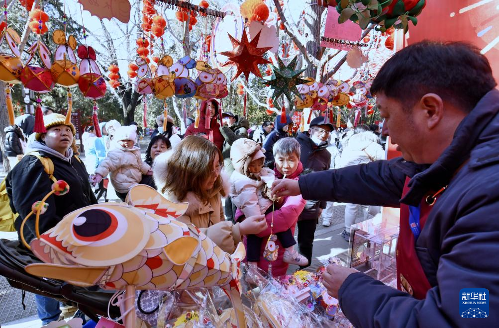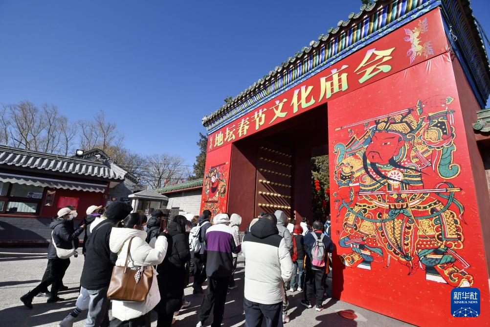 当日是立春,大批市民游客来到北京地坛公园参加在这里举办的春节文化庙会,感受春天气息。