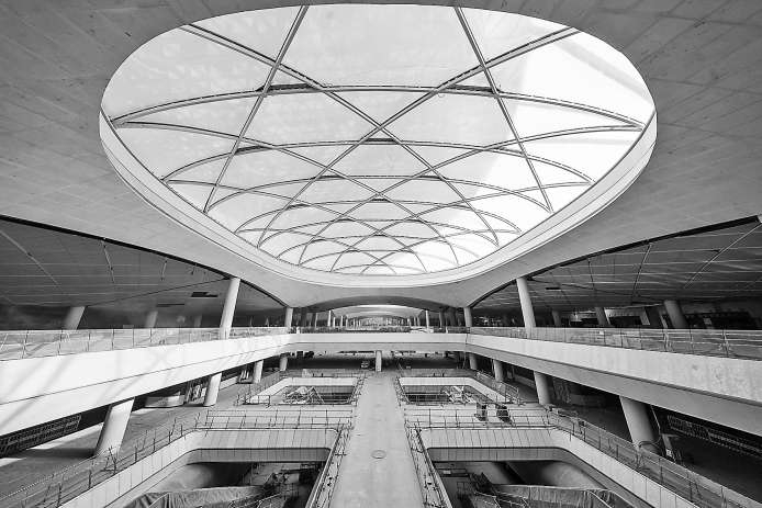 昨天,北京城市副中心站综合交通枢纽项目已全面复工复产,枢纽站台结构完工,项目正进行机电设备安装、装修装饰和运营筹备工作。 本报记者 邓伟 摄