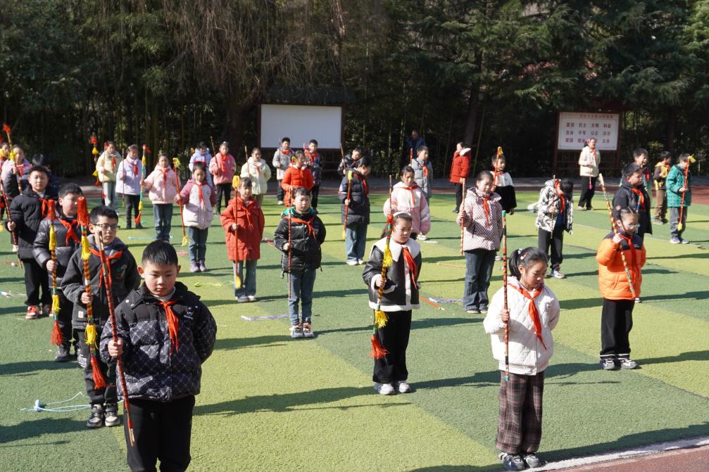 “钱棍舞是重庆市非物质文化遗产。”岚天乡中心小学副校长赵丹丹介绍,为传承地方特色,学校将钱棍舞纳入校本课程,每天大课间时间,全校百余名小学生齐聚在操场上“舞钱棍”,既能强身健体,也提升了他们对传统文化的认同感。