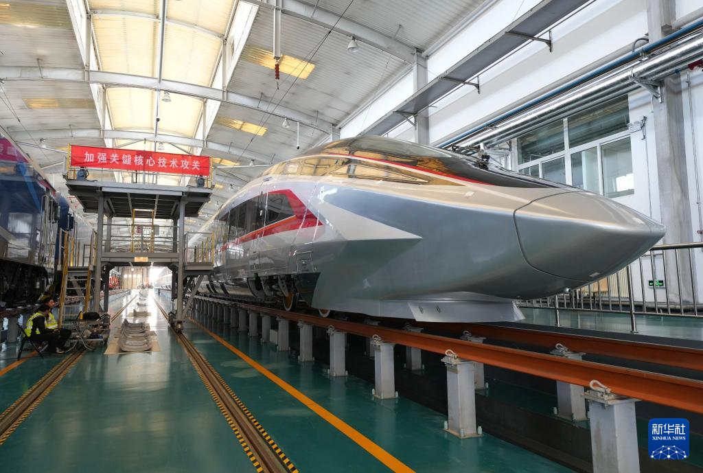 近日,运营时速400公里的高铁列车CR450动车组样车在北京发布。目前相关团队正在开展一系列科学试验和性能验证,为动车投入商业运营创造条件。