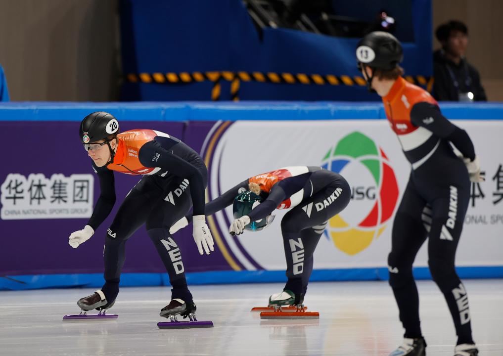 3月14日,在北京举行的2025年国际滑联短道速滑世锦赛混合团体接力四分之一决赛中,荷兰队以2分35秒339的成绩打破世界纪录。新华社记者 丁旭 摄